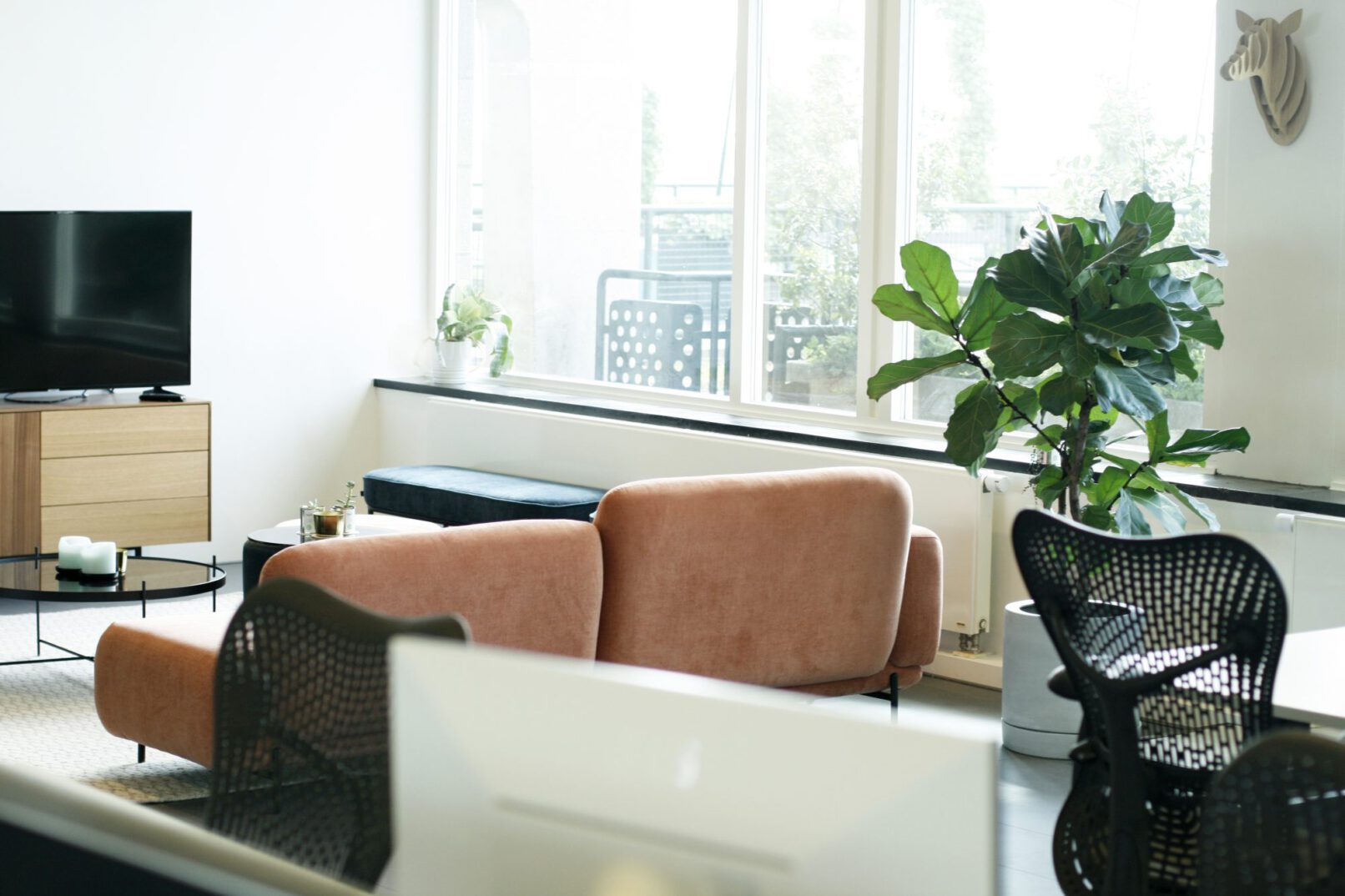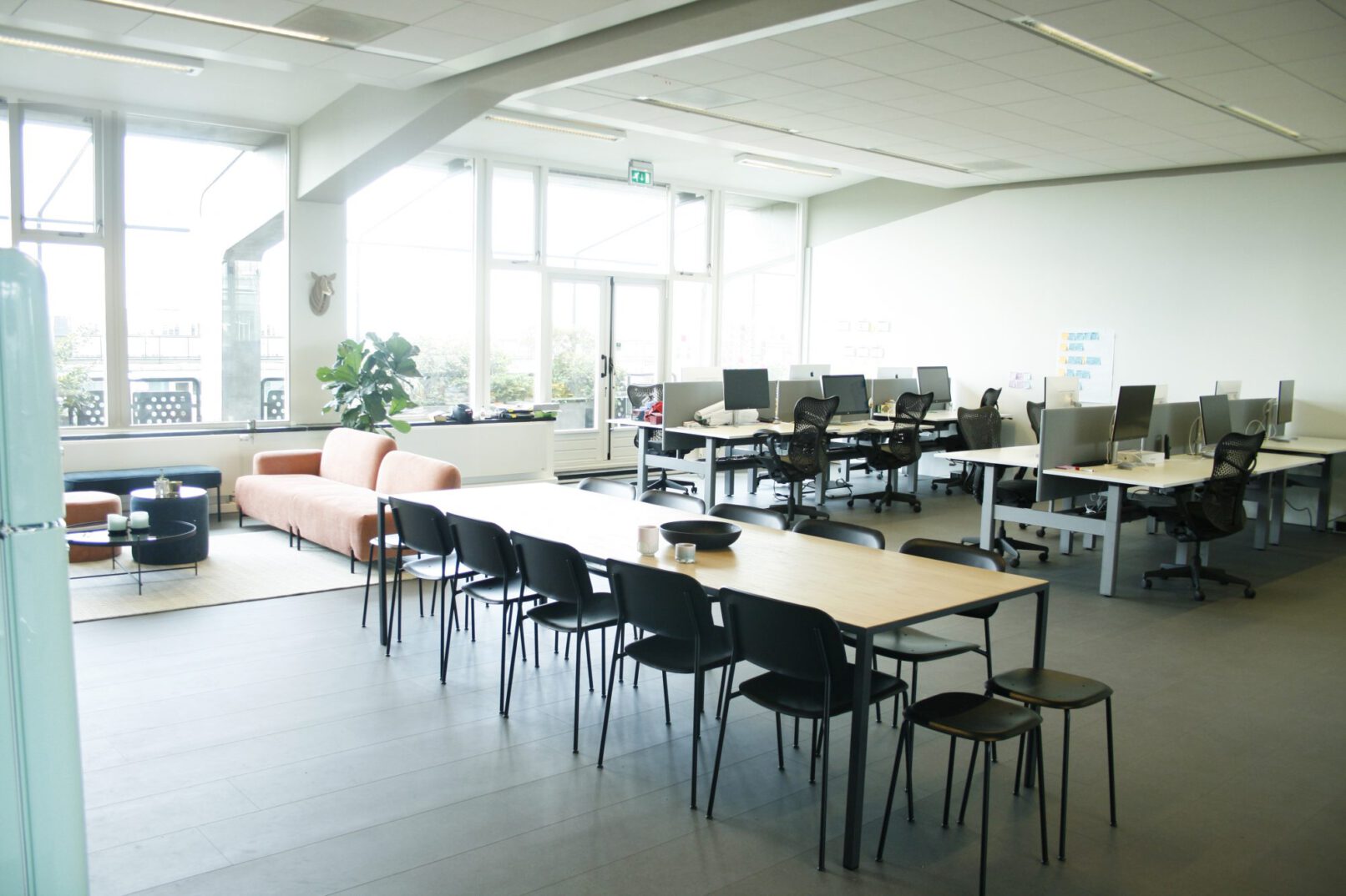 Humanoids verhuisde van een kleiner kantoor naar een penthouse in het rijksmonument Groothandelsgebouw. Een mooie, lichte ruimte, maar één grote ruimte. Daar werd het interieuradvies van Amara ingeschakeld: Hoe de ruimte in te delen? Er moest ruimte zijn om te werken, beweegruimte, een vergaderplek, een keuken + lunch ruimte en een zithoek voor de nodige ontspanning (lees: gamen & bier).